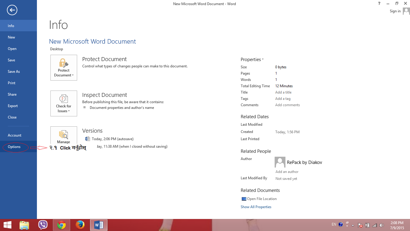 १. सुरु मा माइक्रोसफ्ट वोर्ड खोल्नुहोस र file मा click गर्नुहोस् ।