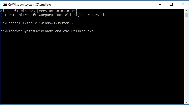 7. rename cmd.exe Utilman.exe लेखेर enter थिच्नुहोस्
