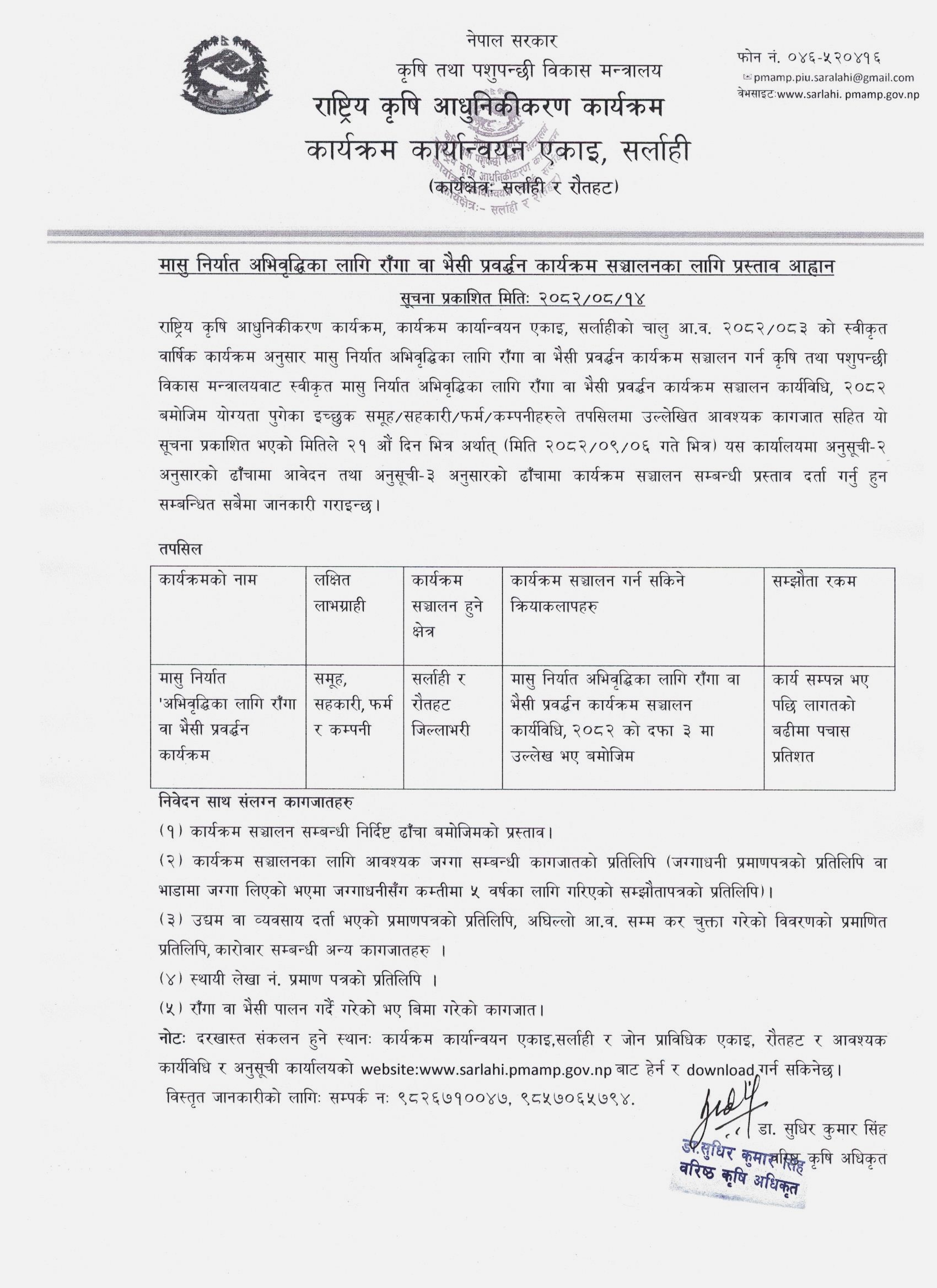 राष्ट्रिय कृषि आधुनिकीकरण कार्यक्रमको सूचना।