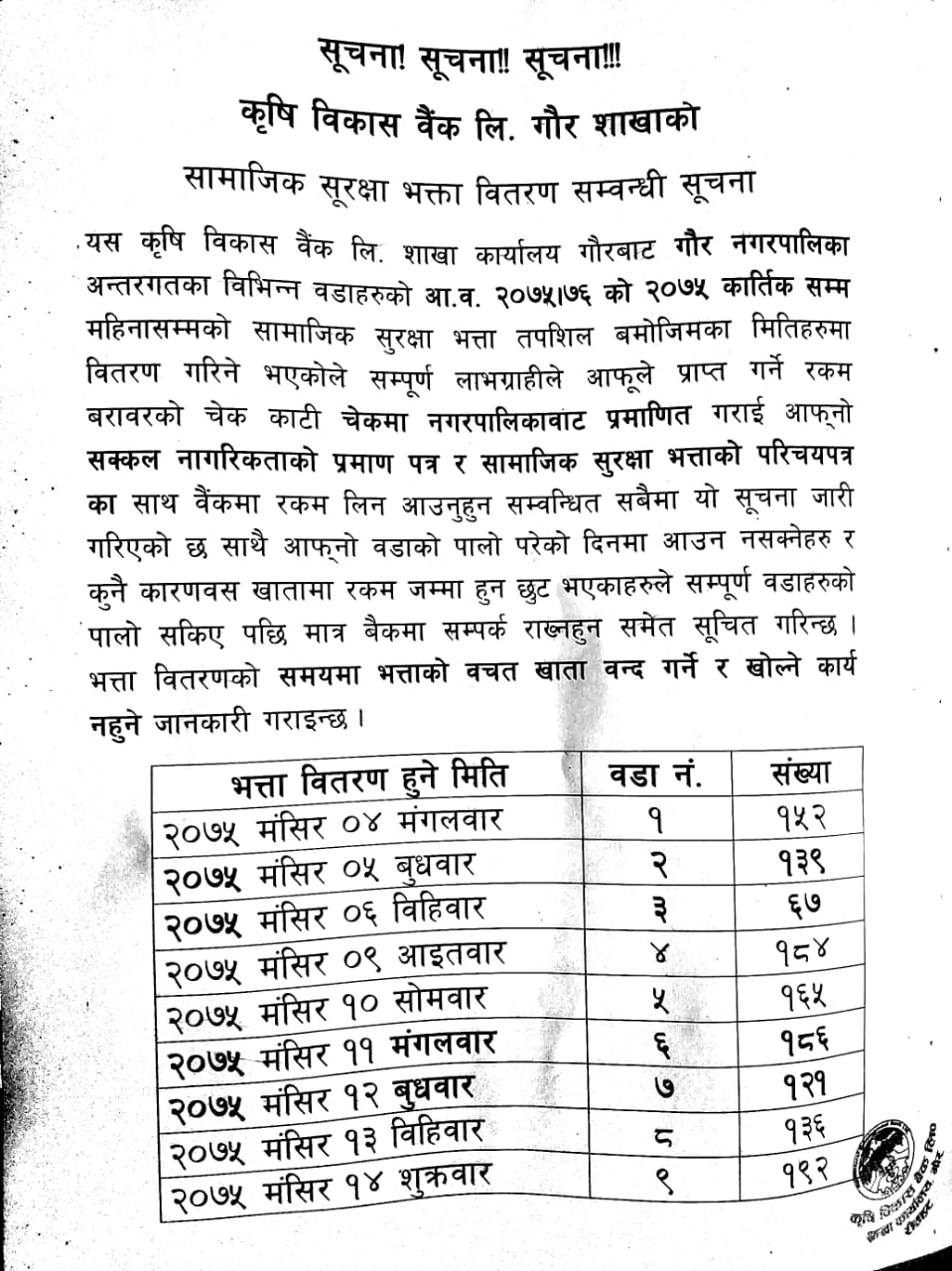 सामाजिक सूरक्षा भत्ता वितरण सम्वन्धि सूचना ।